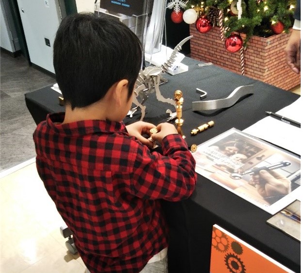 [写真2] 子供さんも金属で作った知恵の輪のような部品の組み立てに夢中です