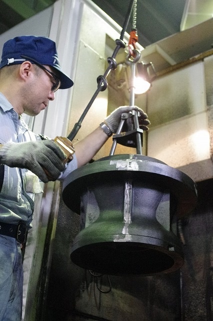 現在はトラック・建設機械など、大型車両の重要保安部品である、車軸ハブ、マニホールドなど、各種バルブ、インフラ関連の鋳物製品、20kg~300kg程度の大型部品の加工が中心だ。コロナ禍で受注が激減した際に営業し始めた「小ロット多品種へのシフト」がようやく実を結び始めている(写真4)。