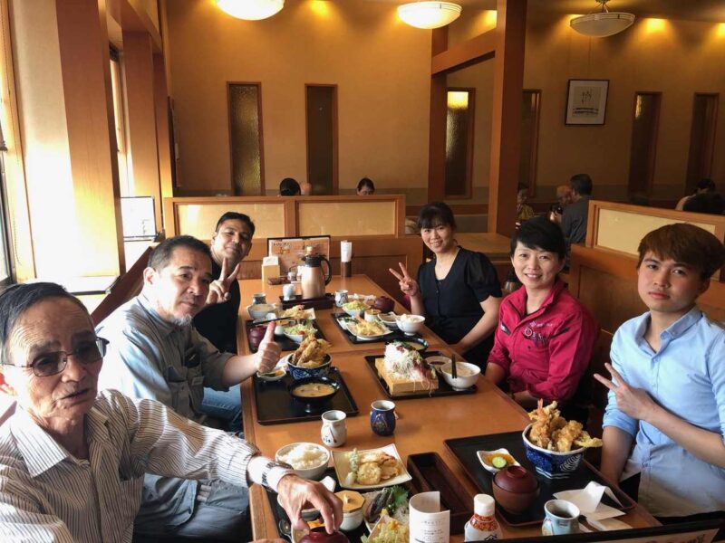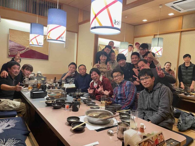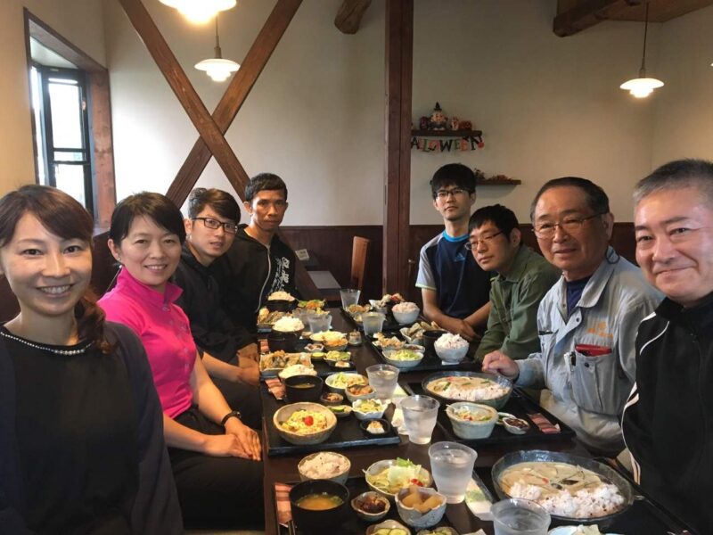 また、冒頭の逸話のように、40年前から井上鉄工所は日本人外国人の垣根がなく、且つ、社員数は40名前後でかなりウエットな家族経営型であり、昨今の「外国人との協働」にはストレスが全くない。(現在は半数以上が外国人)。年に1回の全員社員旅行(コロナ禍中は2年間中止、3年目には断行:外国人、子供達も同行(写真5))、月ごとのバースディランチ会(写真7、8)などの交流会(写真6)を大切にしている。1980年代に海外研修生を受け入れはじめたが、その時には、社内の公用語を英語にして、指示書も、購入する新聞も、つけているテレビも、社内アナウンスも全部英語にした時期があったという。何でも良いと思ったことはとことんやってみる起業家の博文さんらしさも垣間見れる。
