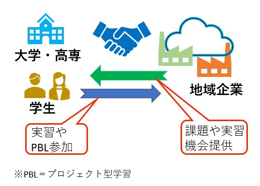 燕市では 2013 年に市と長岡技術科学大学が包括協定を締結し、これを基盤として企業集積と大学との協働が進められてきました。 教育機関との協力では、学生のインターンシップに加え、企業や地域の実事例・課題を題材とした実習やプロジェクト型学習、調査活動などが挙げられます。これにより企業は新しいデジタル知見やアイデアを得ることができ、学生は社会と直結する実践的な学びを経験し、仕事の場として地域の中小企業を認識するきっかけとなります。まさに win-win の関係であり、筆者自身も産学協働の実践教育プログラムに携わる中で、その効果を強く実感しました。(図3参照)