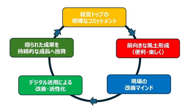 「現状を変えたい」「今のやり方に固執しない」という姿勢が、結果として現場を動かし、デジタル活用を定着させます。小さな改善の積み重ねは、やがて職場全体のコミュニケーションを活性化し、「便利さ」「楽しさ」を感じる企業文化へとつながっていきます。