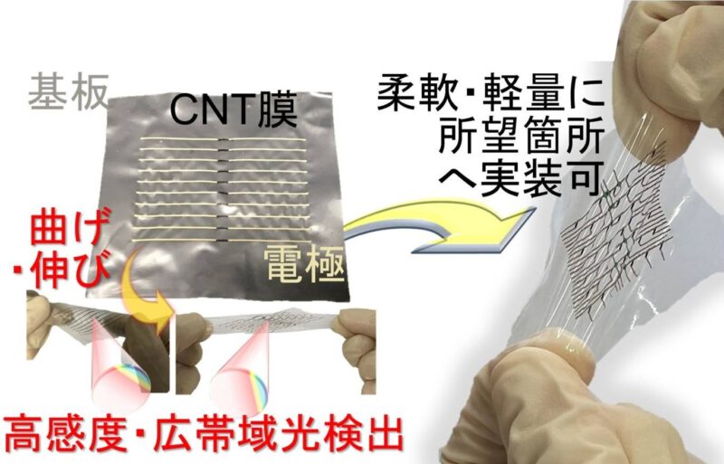 本成果は、特に様々な支持基板材料上へCNTイメージセンサを集積し,基板材料毎にユニークな検査応用を確立しました.中でもウェアラブルグローブとしての応用例は,非破壊検査におけるヒューマンインタラクションを促進する位置付けを占めます.