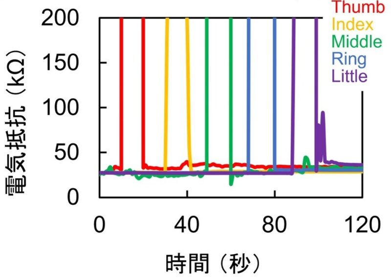 透視センサシートを手に装着することができ,指の動きのリアルタイム検知までも可能に.