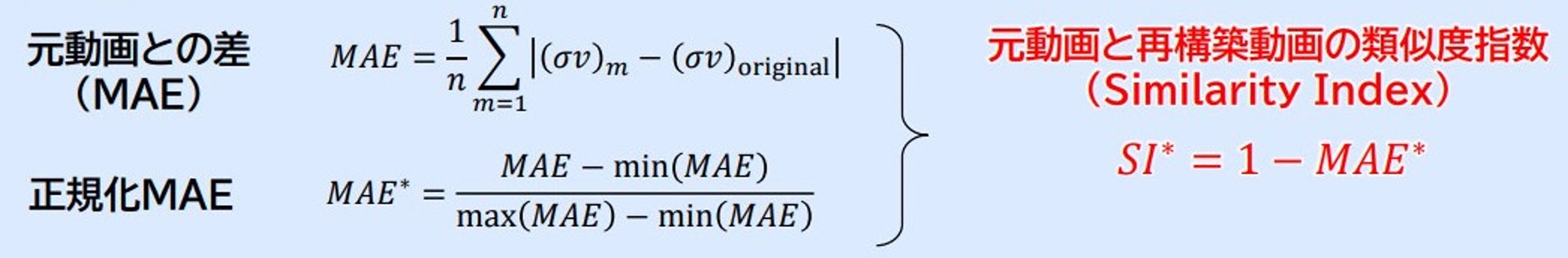 「元動画と再構築動画の差」を平均絶対誤差(MAE)で評価。その結果、400モードまでの再構築で元動画を84%再現し、1000モードまでの再構築で元動画を99%再現することができた。