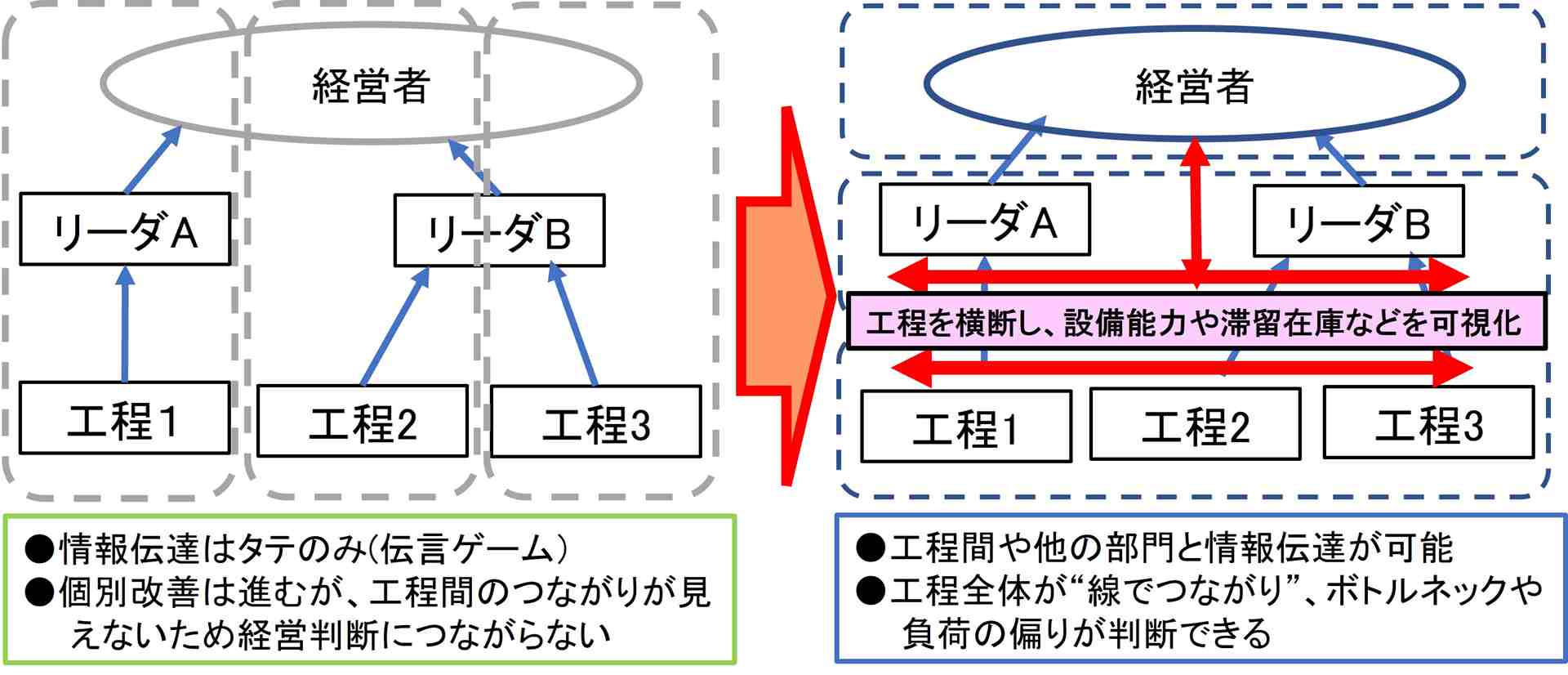 工程間の流れを「横串」で可視化することで、工場全体最適が始まる