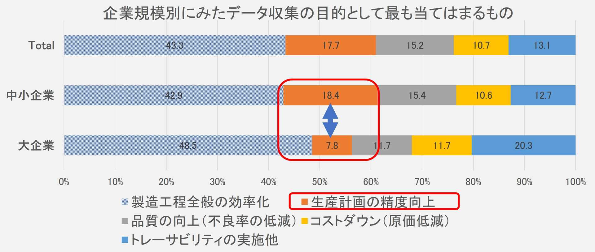 図 3 が示すとおり、中小製造業では、データ収集の目的として「生産計画の精度向上」を重視する割合が高く、OT と IT の情報連携は、そのニーズに最も直結する取り組みといえます。
