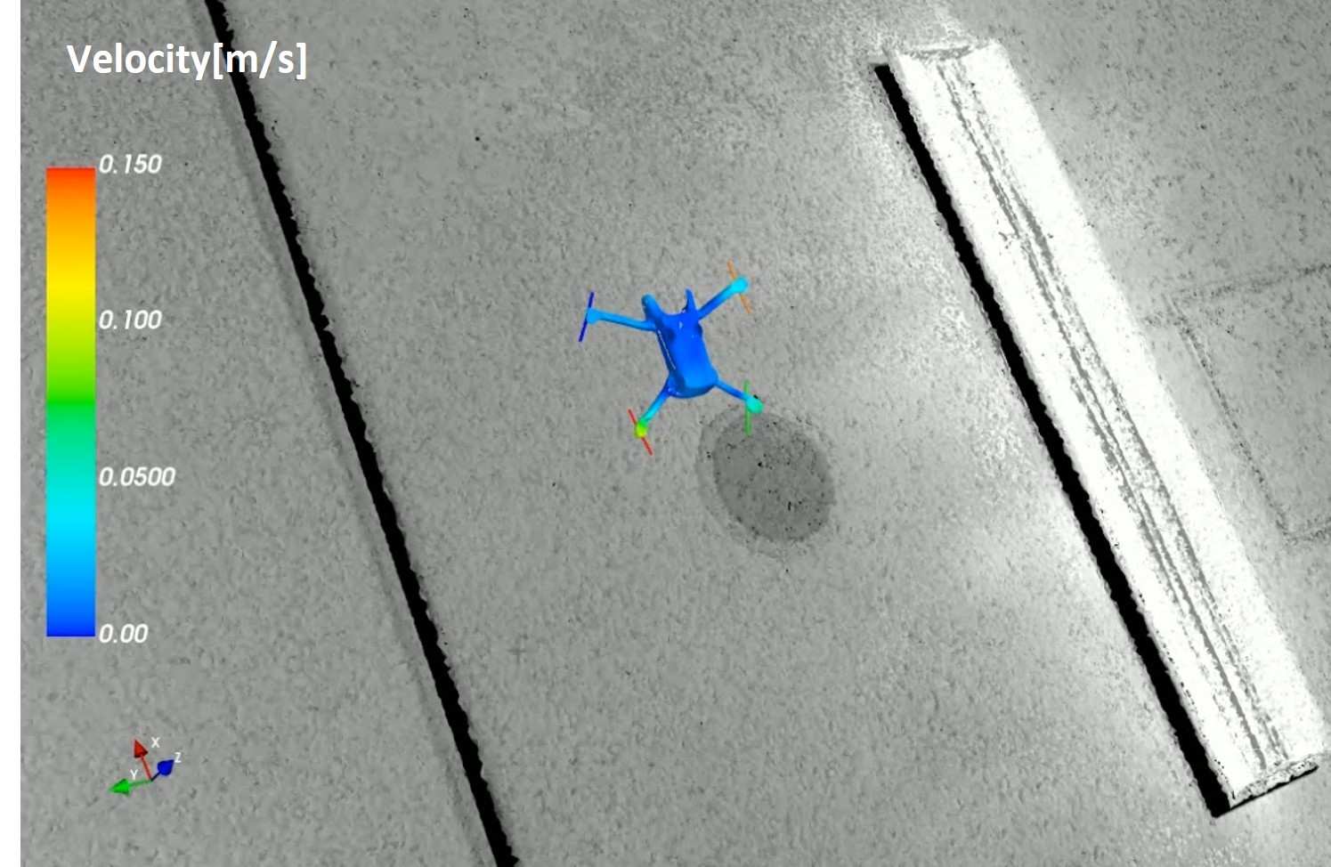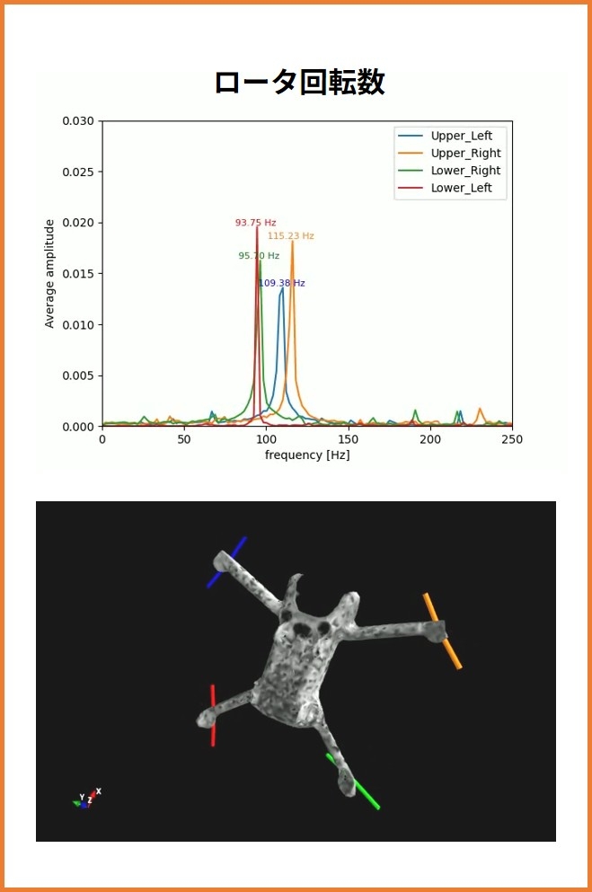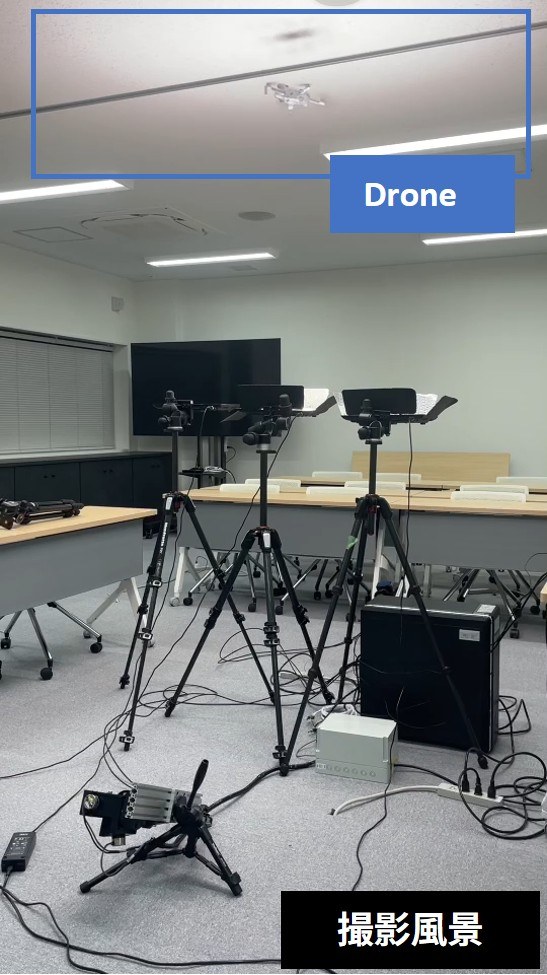 飛行中の位置・姿勢変化やトラッキングカメラによるミラーの影響を最小限に抑え、機体の局所的な挙動、ローター回転数、6自由度飛行軌跡を同時に計測した