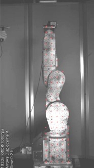 ‐ ランダムパターン塗布 ロボット表面に高コントラストのランダムパターンを塗布し、DICによる高精度追跡を実現。