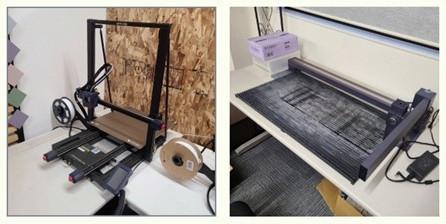 機材および材料について、当面は手軽で安全性の高い卓上型の FDM 方式(Fused Deposition Modeling:熱溶解積層方式)3D プリンタを軸に据え、レーザー加工機や小型切削機、バンドソー等の機器を併用する方針が妥当である。素材については PLA(Polylactic Acid:ポリ乳酸)等の扱いやすい樹脂を基本とし、段階的に再生素材やペットボトル由来フィラメント(熱可塑性樹脂の細⾧い線状素材)の導入を検討することで、循環型ものづくり教育と環境意識育成を組み合わせることが可能である。